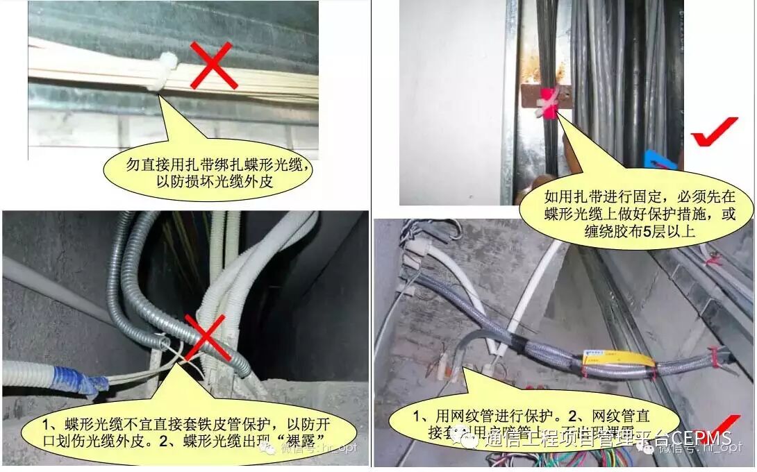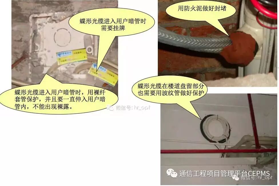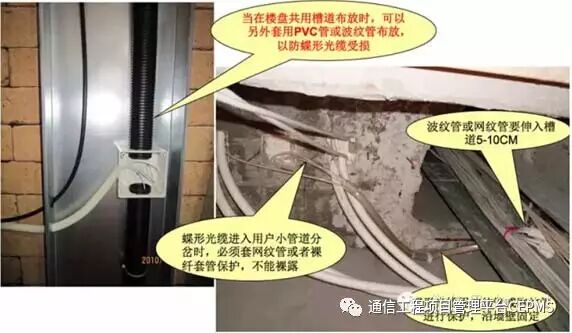 由于FTTH建设的环境比较恶劣,蝶形光缆在楼道中敷设时,保护最重要。
