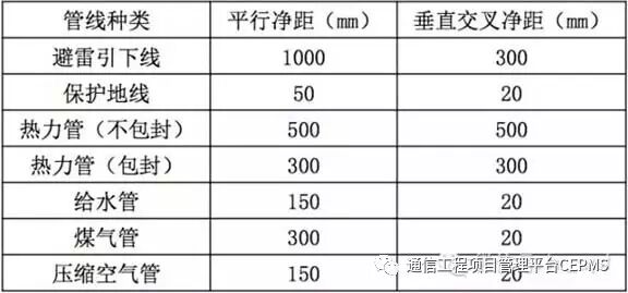 2、楼道内缆线暗管敷设与其它管线最小净距见下表的规定。
