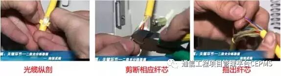 光缆掏接注意事项“掏接”也称“开天窗”,即是将一条光缆纵剖,露出裸光纤,将其中几芯断开与分歧缆接续盘留,剩余纤芯不得受损,“掏接”要注意以下几点: