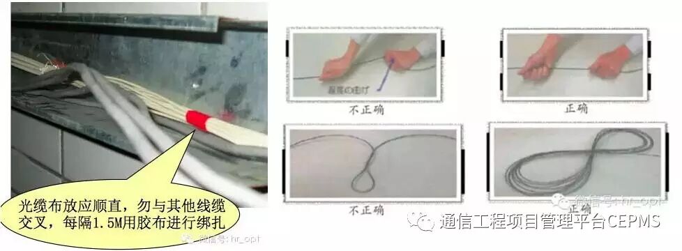7、光缆出管孔150mm 以内不得做弯曲处理。