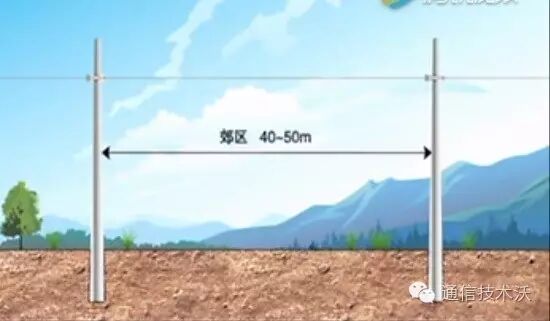 2) 新建杆路档距:有人区、乡村、团场为标准档距(40米--50米),无人区、山区、戈壁可适当放大档距(50米—60米);特殊地区根据现场情况调整;