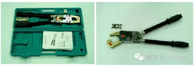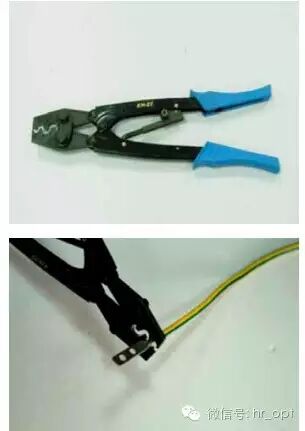 根据所压接连接头的大小,选择合适口径的孔位进行压接,压接钳凸起的部位应该顶在连接头压接管的背部,要保证压接位置和方向的正确性。