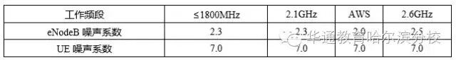 (2)接收机噪声系数:它是用来表征接收机性能的关键参数,为输入端信噪比与输出端信噪比的比值。接收机噪声系数由系统带宽和eNodeB容量等因素决定,接收机噪声系数取值如下: