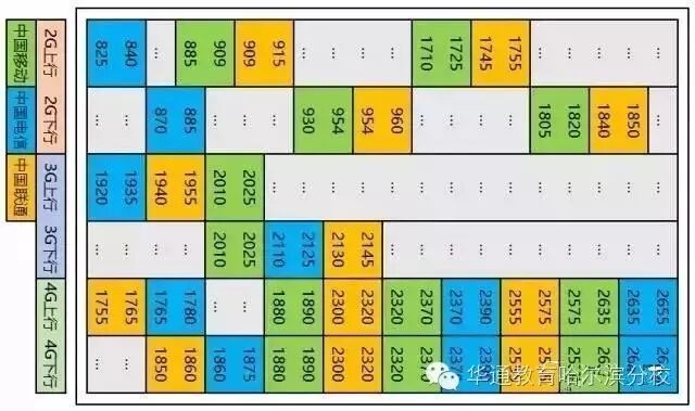 图3 国内2/3/4G网络工作频段及系统带宽分配情况