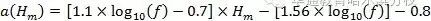 其中, PL为最大允许路径损耗,单位为dB; f为载波频率,单位为Mhz; Hb为eNB天线高度,根据实际情况取值,单位为m; Hm为UE天线高度,单位为m; d为无线信号传播距离,为所需计算的值;Cm 为地物校正因子;另外, 的计算公式如下: