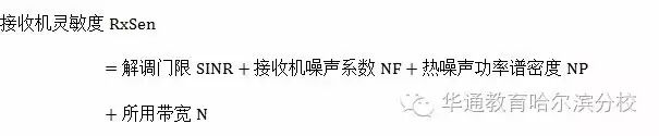 (3)接收机灵敏度:是指接收端能够接收到射频信号的最小门限,其主要影响因素包括无线传播环境、覆盖目标质量要求、小区边缘数据速率、接收机噪声系数等。其计算公式如下: