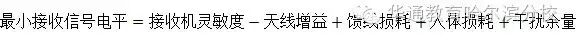 (5)最小接收信号电平:是指接收端能够正确解调有用信号的最小接收信号强度要求,具体计算公式如下: