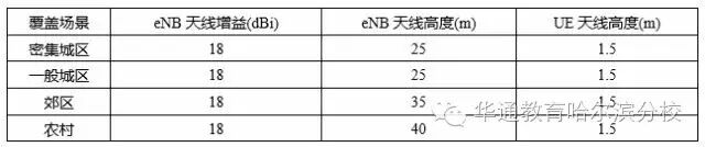 典型的eNB和UE天线高度如下表所示: