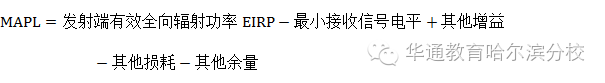 (3)最大允许路径损耗:链路预算的最终目标就是确定上下行无线链路中发射端和接收端天线之间的最大允许路径损耗值,其计算公式如下: