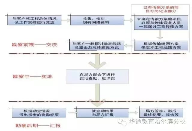 接入光缆工程现场勘察涉及三个主要步骤:为了便于理解,将勘察流程和要点简化如下图: