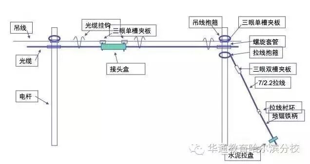 架空光缆采用双吊线抱箍(或单吊线抱箍)固定吊线。