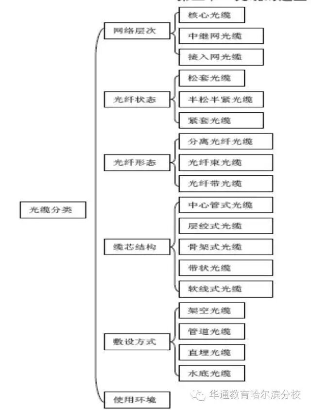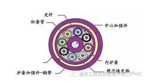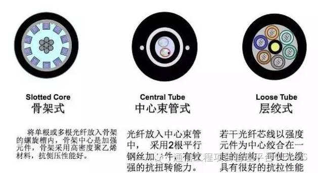 光缆按其结构分为层绞式、中心束管式、带状、骨架式、单位式、软线式等多种。目前常用的有层绞式、中心束管式。