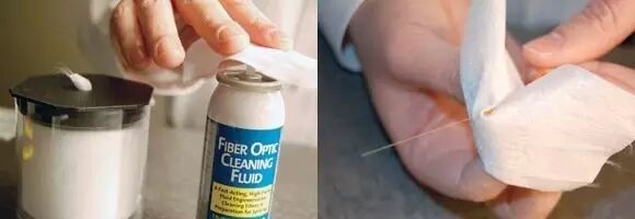 在光纤熔接前,你在把外皮剥掉后,在切光纤前先做一下清洁是非常重要的。这可以去掉剥光纤过程中残留的碎粒以及其他可能存在的污染物。