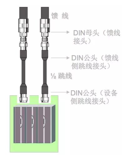最右边跳线的接头是N公,左边跳线头为DIN公.