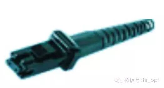 MT-RJ来源于NTT公司开发的MT连接器,其外壳和锁紧机构类似RJ, 通过小型套管两侧的导向销对准光纤,为便于与光接收机/发射机相连,连 接器端面光纤为双芯(间隔0.75mm)排列设计,是主要用于数据传输的高密 度光连接器。标准大小的MT-RJ型可以同时连接两条光纤,有效密度增加了一倍。