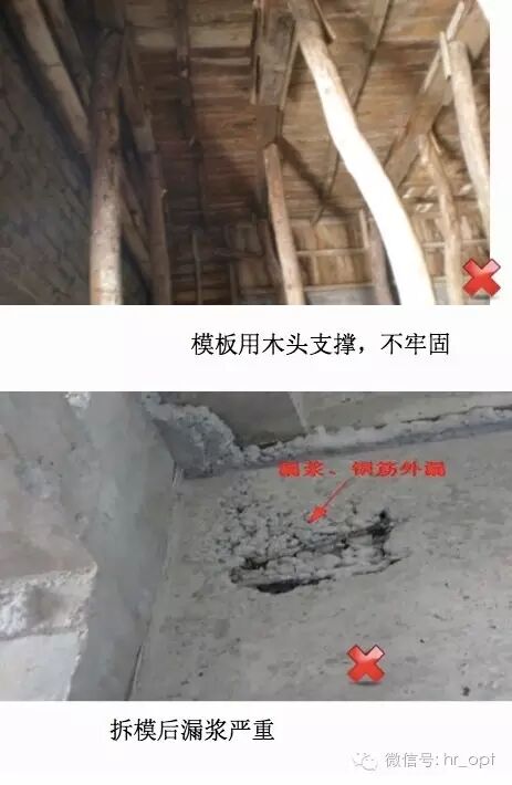(7)模板支撑不牢固,在浇筑混凝土时,易造成模板坍塌或涨模。模板支撑应结实且应立在坚实的地面上,防止支柱下沉,引起坍塌,同时板缝处必须设置斜撑。