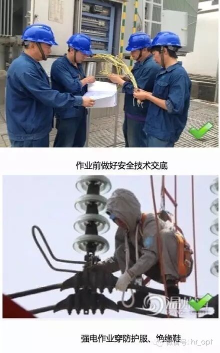 (2)作业人员应做好防护措施,穿绝缘鞋,戴绝缘手套。