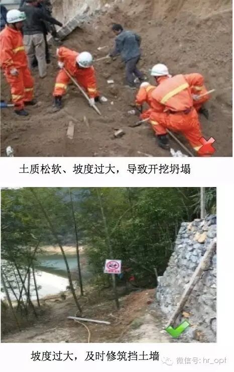 (2)土方开挖过程中,开挖坡度大,土质松软,应做坡面压护,防止土方坍塌。
