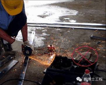 | 图2 切割作业注意清除周围易燃物品或用阻燃材料围蔽,防止火星飞溅引起火灾 | ||||