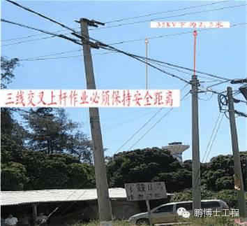 | 1 | 查看立杆地点电力线走向及距离(35KV以下为2.5m,35KV以上为4m)。 | ||||