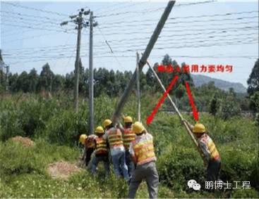 | 3 | 抬、立杆人员合理配备,保证杆身受力均匀,避免杆断伤人。 | |||