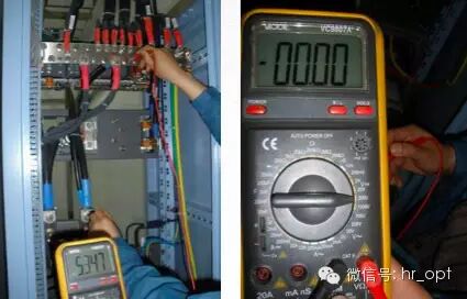 使用万用表测量输出空开上端电压:+24V电源输出电压范围为21.6V~29V,-48V电源输出电源范围为-43.2V~-57.6V,如果超出范围需进行调整。