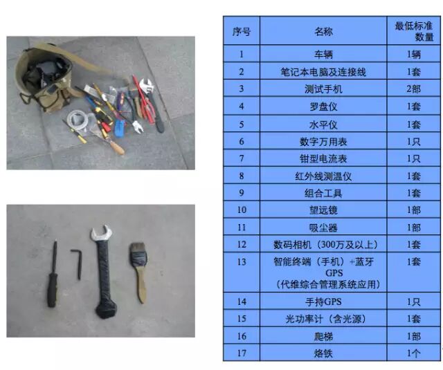 登上铁塔使用罗盘和坡度仪放置在天线被面测量俯仰角。