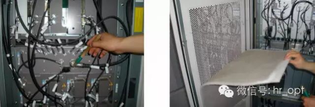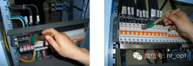 熔断器、空开灯表面、机架内无积灰,使用木柄毛刷清除灰尘。