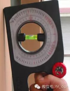 ⑴ 用坡度仪测试天线的俯角:将坡度仪紧贴天线背面,调节旋钮使水泡居中,得一刻度数,90度减去该度数即为天线俯角。