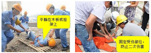 (3)如发生骨折,移动时必须采用担架或平躺木板,防止骨折部位错位,发生二次伤害。