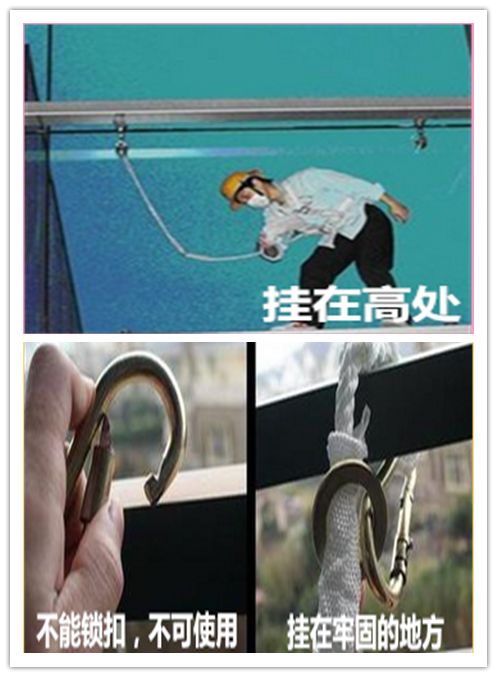 (4)切勿使用一般绳索、皮线等代替保险带,安全带也不可以当吊绳使用。