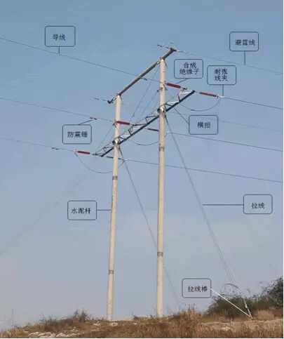 杆塔是电杆和铁塔的总称。杆塔的用途是支持导线和避雷线,以使导线之间、导线与避、导线与地面及交叉跨越物之间保持一定的安全距离。杆塔现场水泥杆图如下图(铁塔见输电线路组成部分):