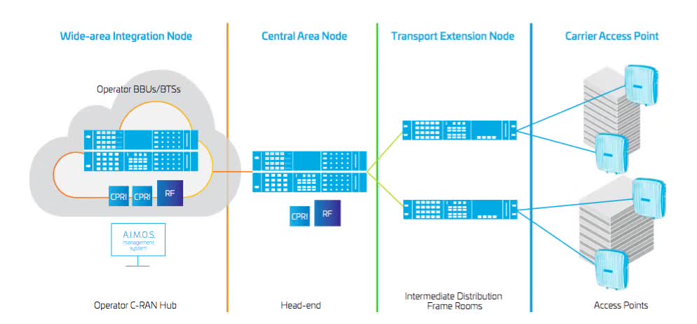 服务节点相当于Cloud RAN控制器,可连接到LTE核心网。无线节点支持LTE、LTE-U和LAA,采用PoE供电。