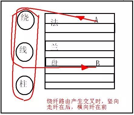 特别注意:如尾纤路由交叉不可避免时,应采取所有竖向走纤在后,横向走纤在前的方式,将所有尾纤理顺。