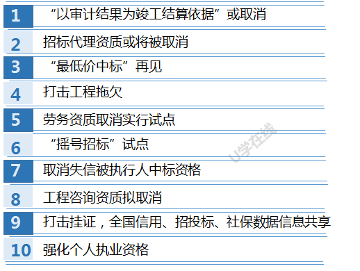 2017年7月,住建部就已执行10年的《注册建造师管理规定》公开征求修改意见,意见指出加快修订企业资质标准和管理规定,简化企业资质类别和等级设置,减少不必要的资质认定。同时提出“所有项目的项目负责人、项目技术负责人和施工单位技术负责都必须为注册建造师”、“明确一级建造师和二级建造师承接项目规模”等个人执业资格要求。