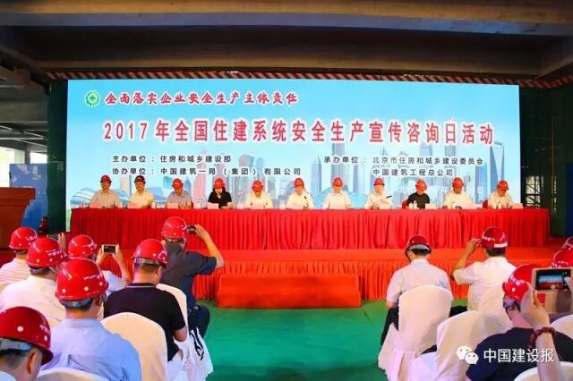 6月16日,住房城乡建设部在京举办2017年全国住建系统安全生产宣传咨询日活动。活动现场,住房城乡建设部副部长易军等与会领导向建筑工人代表赠送了《工程项目施工人员安全指导手册》,并参观了宣传咨询现场,观摩了项目安全体验式教育和多媒体教育活动区。