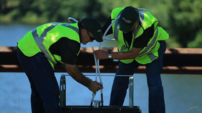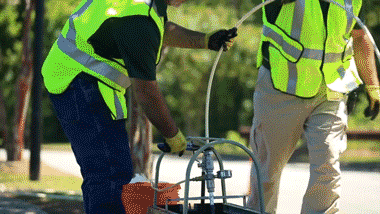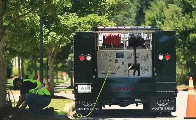 刚才说了,整个过程根据同轴电缆节点分段进行的。当第一段线路抽空后,接下来再继续第二段,直到预规划的整条线路完成才吹放光缆。那些降解液通过水桶回收,重复使用。