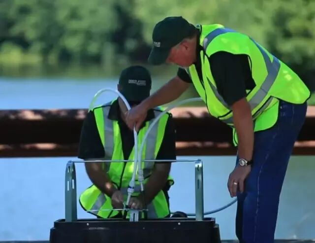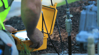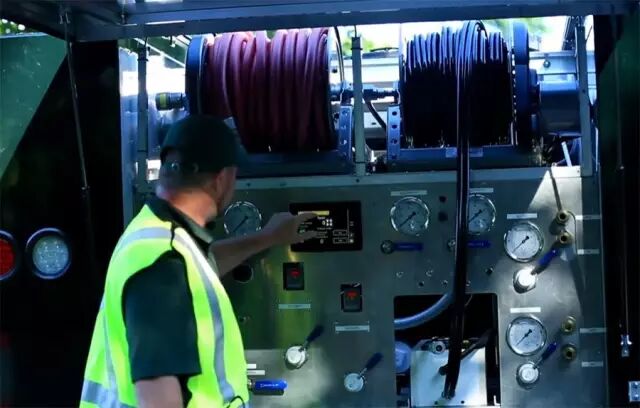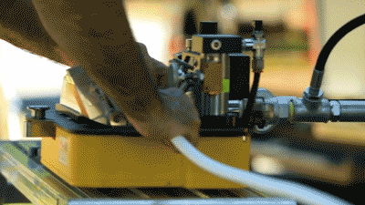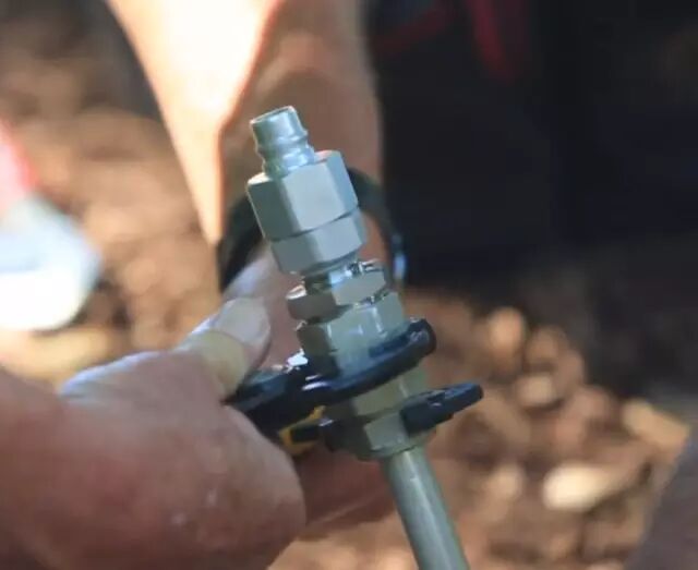 连接完毕,启动空气压缩机,将降解液注入同轴电缆。这个空气压缩机可根据输入的电缆类型、大小和长度,自动精确计算压入液体量。