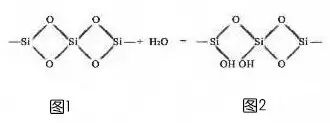 光纤怕水的原因是:光纤是玻璃(Si04)硅氧四面体相互连接构成的,如图1所示。在一Si—O—Si一网络中,氧原子以桥氧的形式存在。但在有水的环境中,玻璃表面吸附水气后,慢慢地发生水解反应,于是导致原网络一Si一0一Si一中的硅氧键断裂,桥氧变成非桥氧如图2,结果造成玻璃裂纹,并使裂纹不断增长。
