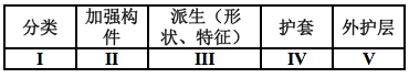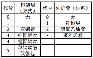 Y—聚乙烯护套;V—聚氯乙烯护套;U—聚氨酯护套;A一铝_聚乙烯粘结护层;L—铝护套;G—钢护套;Q—铅护套;S—钢_铝_聚乙烯综合护套