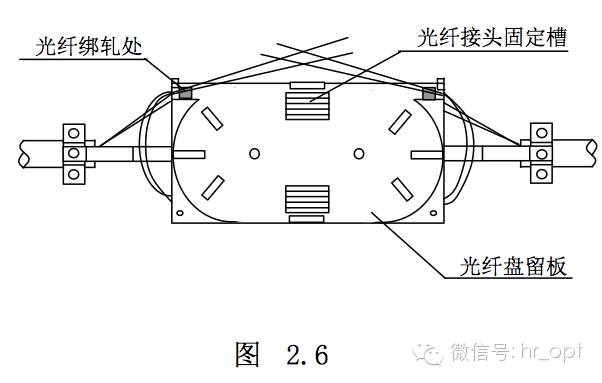 2.5.5-4用清洗剂、酒精棉纸擦净光纤上油膏,把光纤放置在盘留板的引入槽内,用绑扎带绑扎固定。见图2.6。