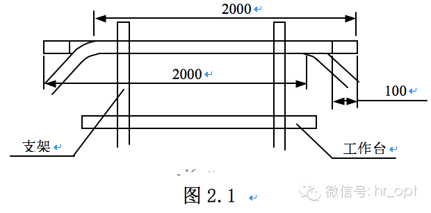2.5.1-3把已理直的光缆架设在工作台两侧的固定支架上。