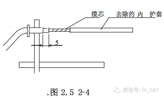 2.5.4-1在内护套切口处保留加强芯60mm长,其余部分剪去,见图2.5.4-1。