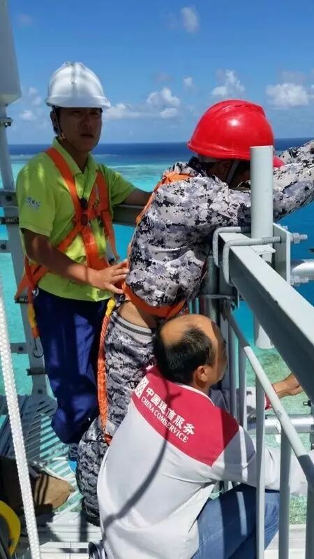 连续几个月海上工作的中国电信三沙建设团队凯璇归来